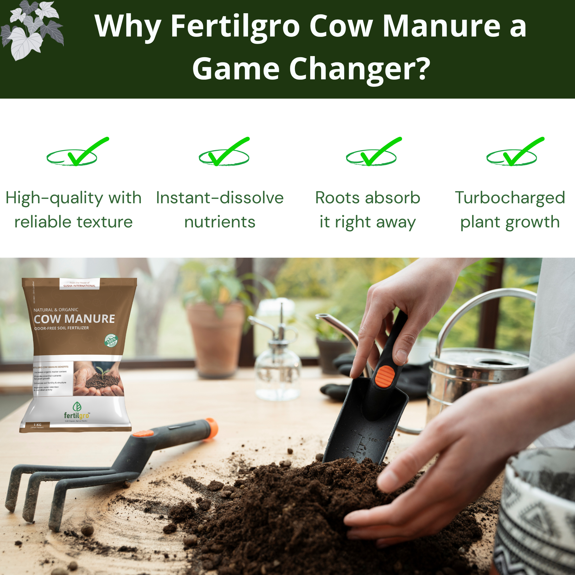 Fertilgro Cow Manure is a natural, nutrient-rich organic fertilizer that enhances soil fertility and structure. Packed with essential nutrients like nitrogen, phosphorus, and potassium, it promotes healthy plant growth and improves soil moisture retention. As a sustainable and eco-friendly option, it recycles waste while enriching the soil, making it a valuable resource for gardeners and farmers alike.