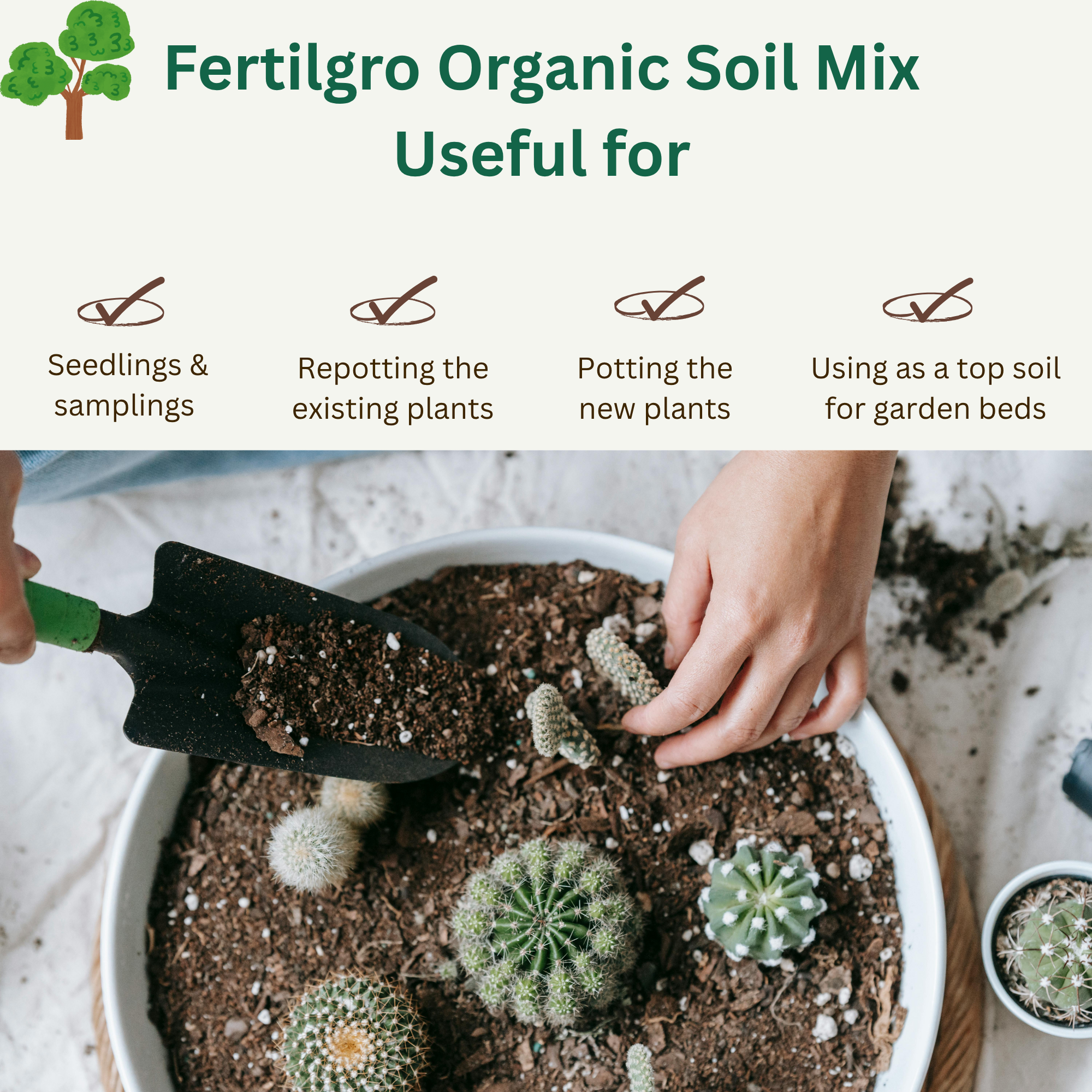 Additional information | Key Benefits of Fertilgro Potting Soil Mix: The mix is enriched with essential nutrients, including nitrogen, phosphorus, and potassium, as well as micronutrients, which promote healthy and vigorous plant growth. Direction for Use Fill your pot halfway with the Fertilgro organic potting soil mix.